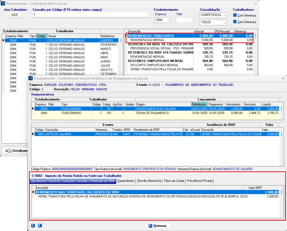 Isso gerava diferença no valor do Rendimento Tributável retornado pelo evento S-5002.