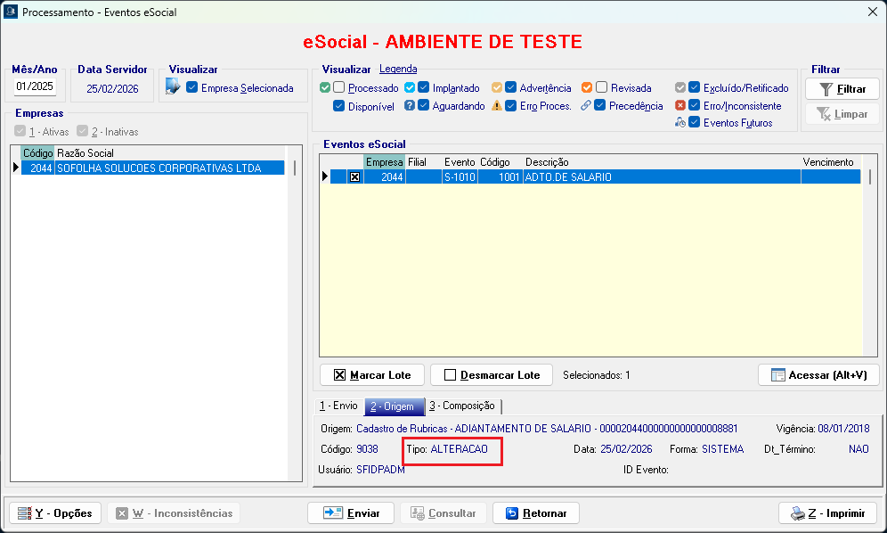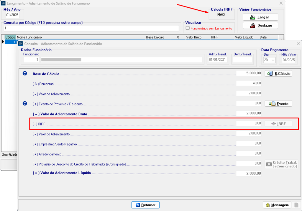 Isso ocorrerá se a empresa possuir ao menos um lançamento de Adiantamento de Salário com incidência de IRRF após o início dos Eventos Periódicos.