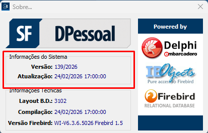 Confirme se sua versão é igual ou superior à 139/2026 (24/02/2026).