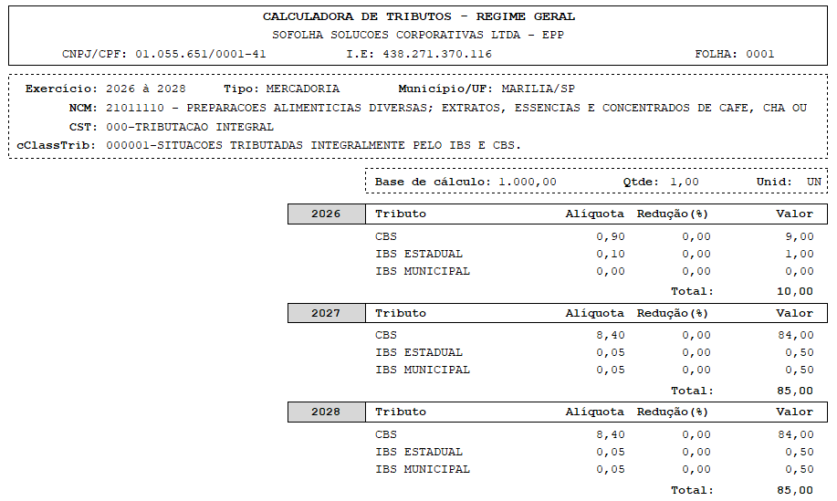 Calculadora de Tributos da Reforma Tributária sobre o Consumo